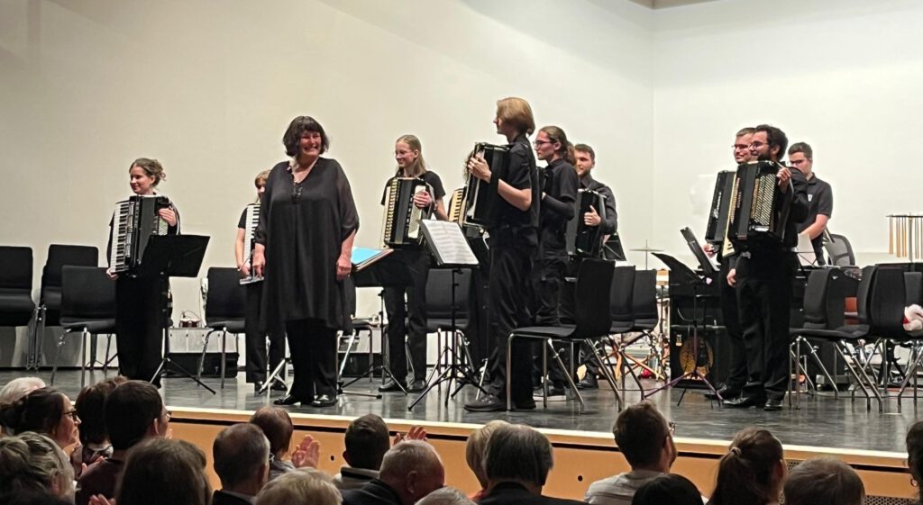 Am vergangenen Samstag fand das Jahreskonzert des Akkordeon-Orchesters Baltmannsweiler e.V. (AOB) im voll besetzten Kulturzentrum statt. Es war ein gelungener Abschluss zum Jubiläum 750 Jahre Hohengehren – 725 Jahre Baltmannsweiler – 50 Jahre Verbundgemeinde. Im Gespräch mit Herrn Bürgermeister Simon Schmid betonte dieser, „wie wichtig es sei Räume für Begegnungen anzubieten. Und hier leiste das AOB neben vielen anderen Vereinen einen wertvollen Beitrag. Zudem sei das Orchester ja auch ein Aushängeschild der Gemeinde.“ Hierauf nahm auch Michael Nille (Vorsitzender des AOB und Konzertmeister) in seiner Begrüßung Bezug. Denn das Konzert am Nikolaustag war der erste Auftritt nach dem „Vizeweltmeister-Titel“ beim diesjährigen „World Music Festival“ in Innsbruck.